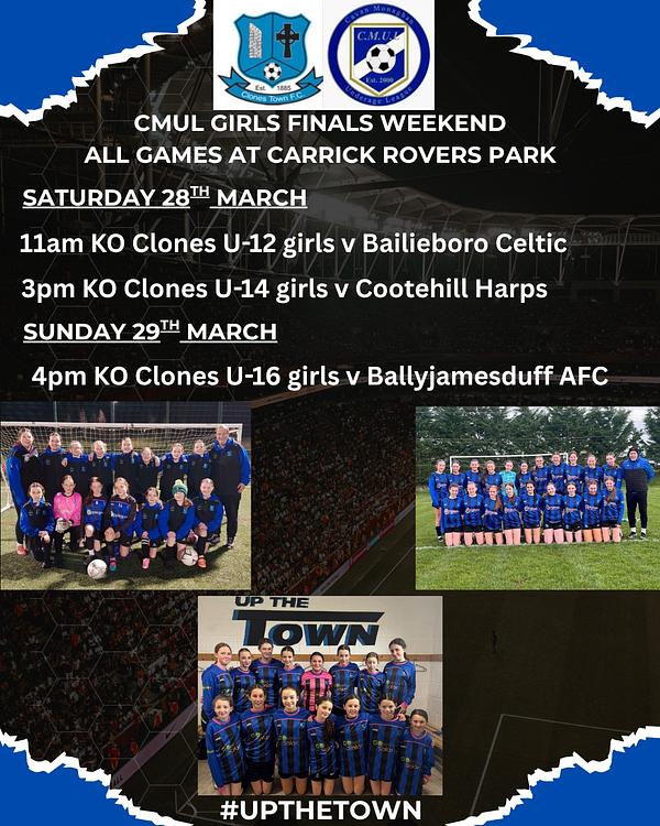Clones Town AFC are proudly represented by THREE girls teams in finals this weekend π€π
